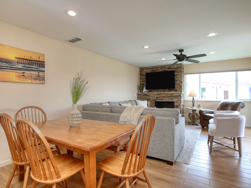 Step into your beachy haven at 100 Pismo Ave Unit 120, where coastal charm meets laid-back living. The bright, airy interior is decked out with breezy coastal decor, setting the tone for a relaxing stay. Sink into plush living room seating after a day of sun and sand, or whip up a meal in the fully equipped kitchen with plenty of counter workspace and dining.